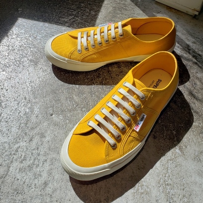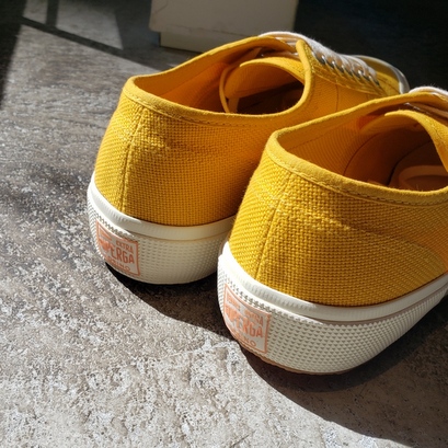 イエローのキャンバススニーカー